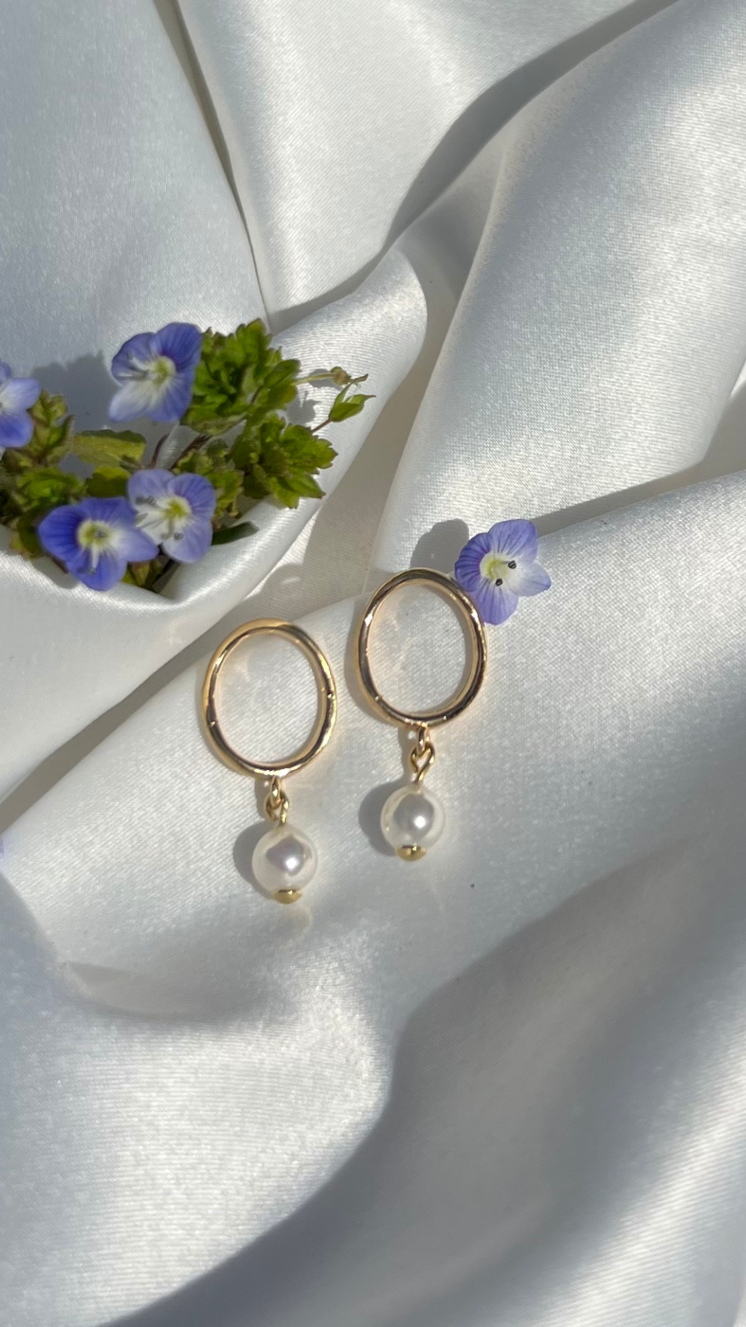 Kolczyki Amor zostały wykonane ze srebra próby 925, pokrytego 18-karatowym złotem oraz ozdobione perłą muszlową.